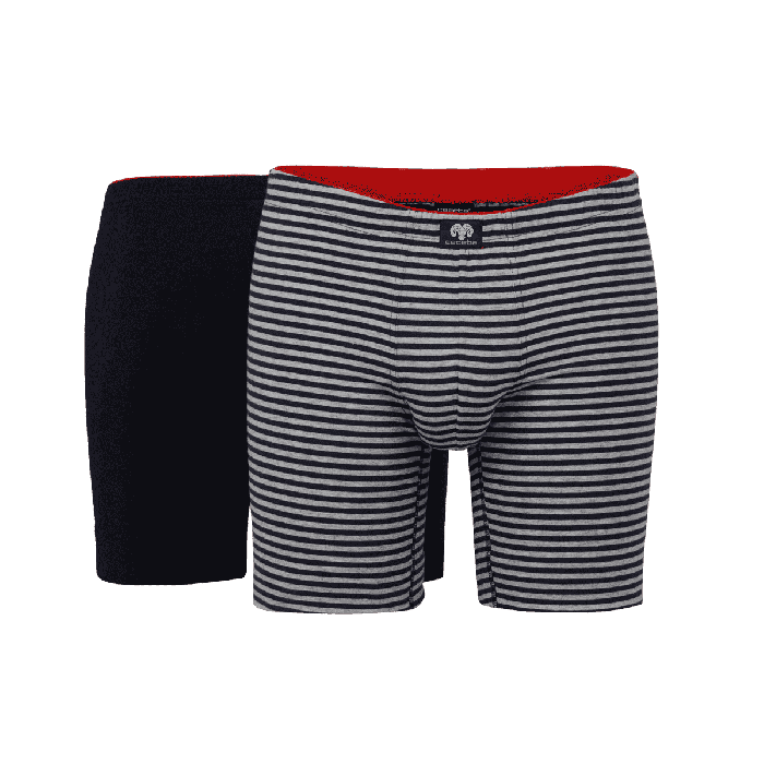 2 boxers in een model met extra lange pijpen in een voordelig 2-pack, ook wel bekend als het Radler Cyclist model. Deze boxers zijn gemaakt in een comfortabele single jersey tricot van katoen met stretch zodat de boxer mooi aangesloten om het lichaam zit en mooi in model blijft tijdens het dragen en wassen. Het voorstuk is dubbel uitgevoerd voor een prettige ondersteuning en heeft geen gulp. De short zijn afgewerkt met een elastische tailleband.