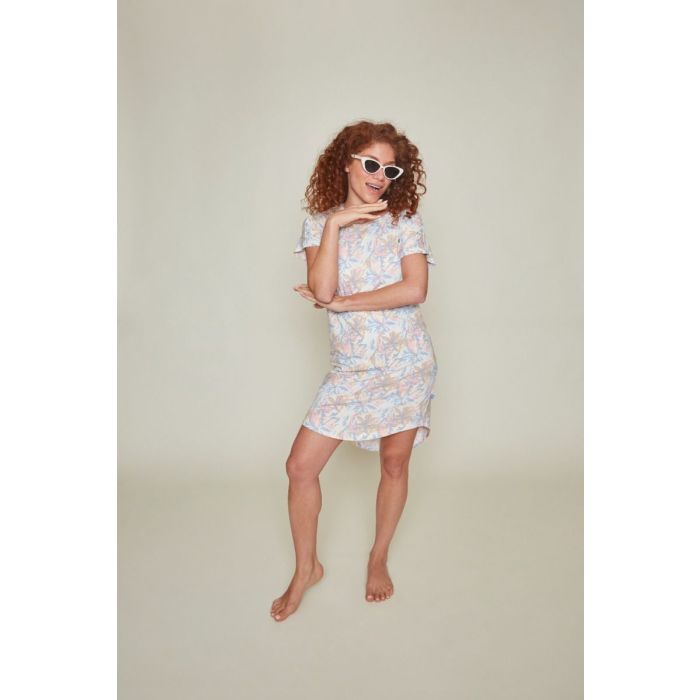 Dit dames nachthemd van een katoen/modal mix in de kleur off white draagt heerlijk! Het nachthemd heeft een bigshirt model met korte mouwen en komt uit de Charlie Choe zomercollectie. Het wijdvallende ontwerp zorgt voor extra comfort en bewegingsvrijheid, perfect voor een ontspannen nachtrust. De all-over print van gestileerde bloemen in zachte tinten van lichtroze, lichtblauw en beige geeft het nachthemd een frisse, vrouwelijke uitstraling.