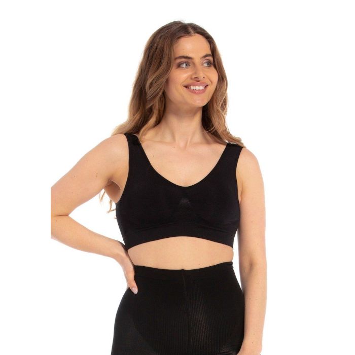 • Zacht en naadloos afgewerkte bh zonder beugel