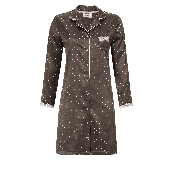 Dit satijnen nachthemd van Ringella komt uit de Lingerie serie. Het nachthemd is een doorknoop nachthemd met lange mouwen en een kraagje.