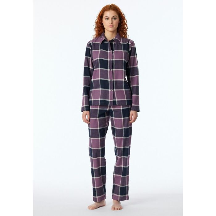 Schiesser geruite dames pyjama flanel 181991 804 Nachtblau