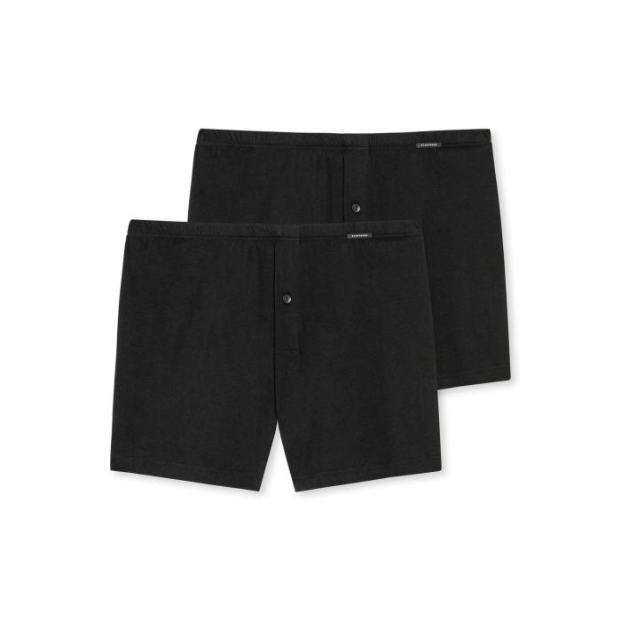 Bij deze twee boxershorts voor heren treffen een casual look en fijne single jersey uit 100 % katoen elkaar. De knoopsluiting met zichtbare knoop zet een functioneel detail, de elastische meernaaldband zorgt voor een hoog draagcomfort en vormvastheid gedurende de dag. Een mannelijk ondergoed-dubbelpack in zwart - natuurlijk in uitstekende SCHIESSER-kwaliteit!