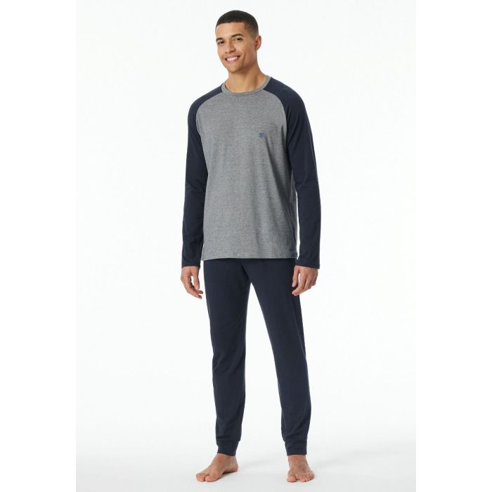 - lange heren pyjama met gestreept shirt met lange mouwen in nachtblauw en nachtblauwe broek