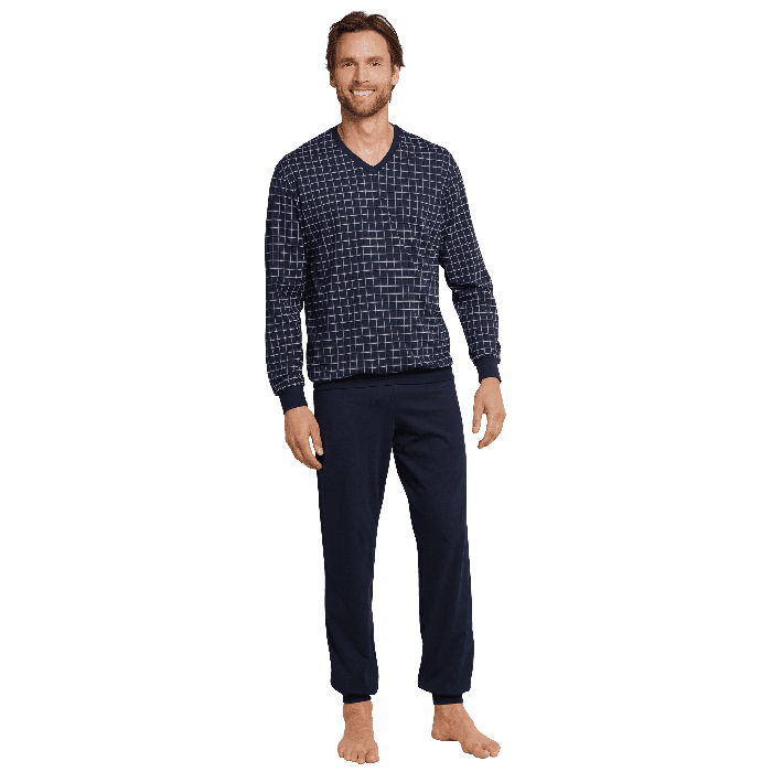Schiesser pyjama V- hals geruit met effen broek.(159618)
