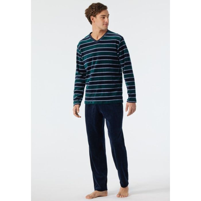 Schiesser heren pyjama velours 178038 702 dunkelgr}n